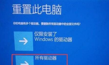 6、最终选择“仅限于安装了Windows的驱动器”,假如重置不行再重复以上操作并选择“全部驱动器”就可以。