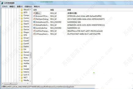 2、在注册表中依次展开HEKEY_LOCAL_MACHINE\SOFTWARE\Microsoft\Windows\CurrentVersion\Explorer;