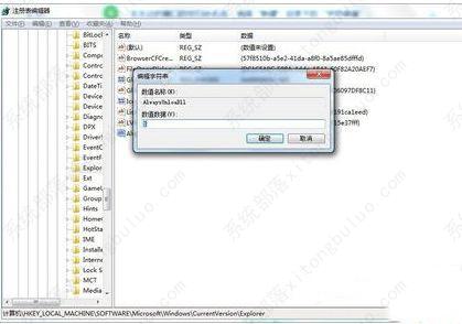 4、双击打开AlwaysUnloaDll,将其数值数据改为1,点击确定。