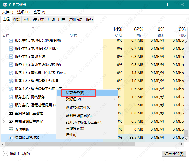 2,右键,选择“结束进程数