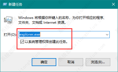 4,在任务对话框里面输入“explorer.exe”