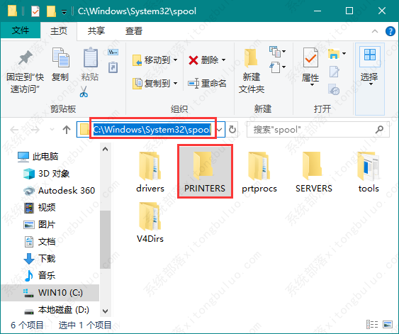 2、之后会进入路径为“C:\Windows\System32\spool”的文件夹中,如图所示;