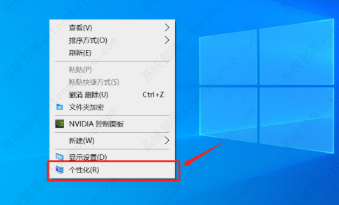 1、在Win10桌面的空白处单击鼠标右键,然后在弹出的桌面右键菜单中单击“个性化”。