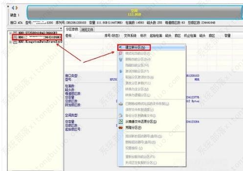 1、运行DiskGenius,如下图所示,在左侧,选中新硬盘,可以看到,上方显示的是空闲的灰色条,右键点击这个灰色条,选择“建立新分区”。