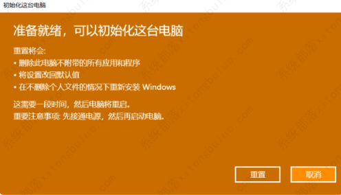 5、点击“重置”,会立即开始初始化电脑。如果选择“删除所有内容”,会看到以上画面。