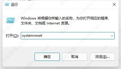 2、这时候可以按下键盘“win+r”打开运行,输入“systemreset”回车确定。