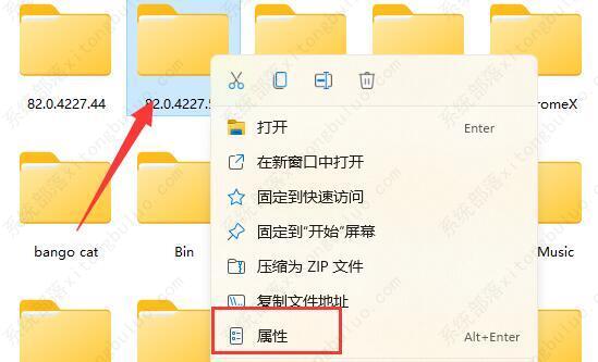 1、首先我们找到有该问题的文件夹,然后右键选中,点击选中“属性”。