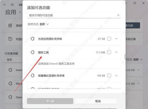 4、然后找到“图形工具”,安装后,Win11就可以开启DirectX诊断工具了。