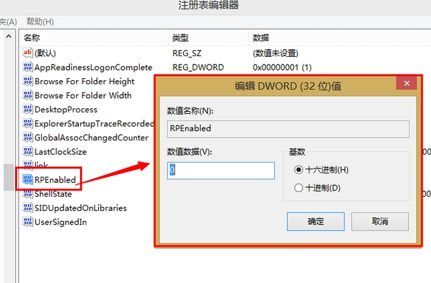 在Explorer右侧栏找到RPEnabled,将其值从1改为0。