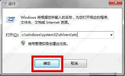 2、在运行文本框输入c:\windows\system32\drivers\etc,点击回车确定即可。