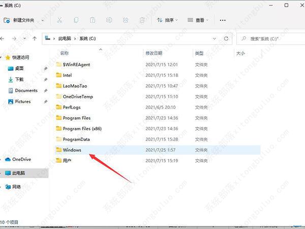1、首先开启此电脑,双击打开C盘,然后进入Windows文件夹。