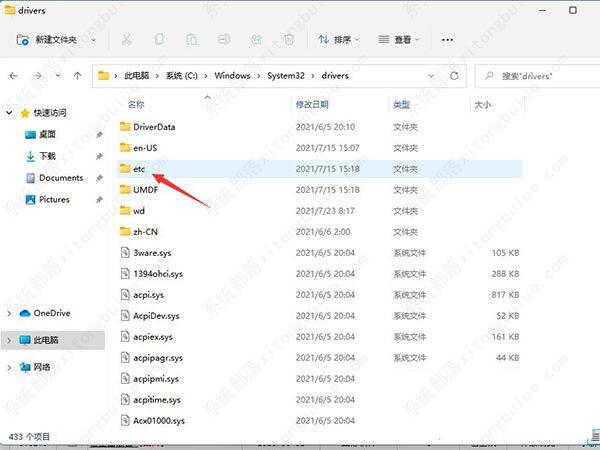 3、最后打开etc文件夹,就可以看到hosts文件。