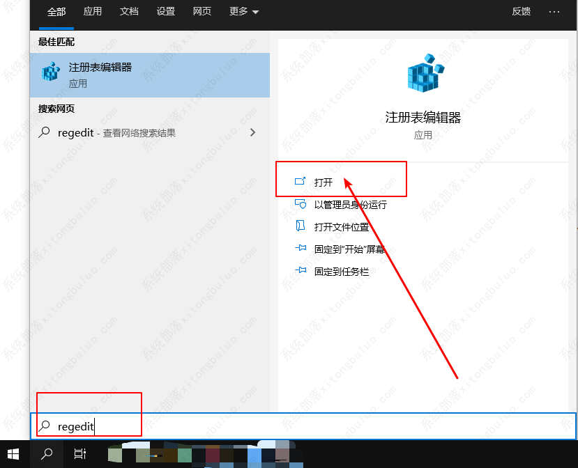 3、在Cortana搜索栏输入regedit后按回车键打开注册表编辑器,定位到: