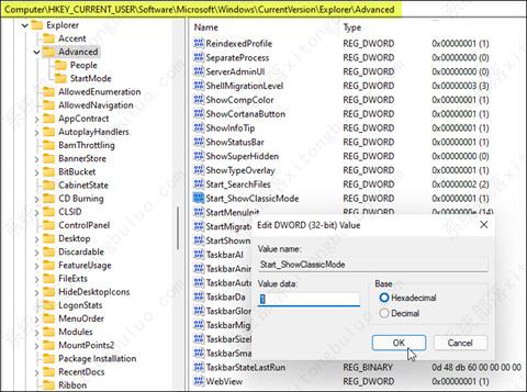 HKEY_CURRENT_USER\Software\Microsoft\Windows\CurrentVersion\Explorer\Advanced