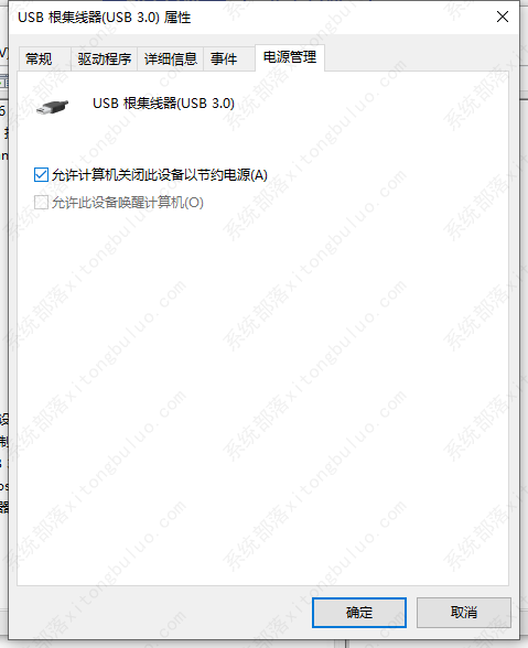 5、在打开的属性窗口中,我们选择电源管理,把下方的允许计算机关闭此设备以节约电源的选项取消勾选,再点击确定即可。
