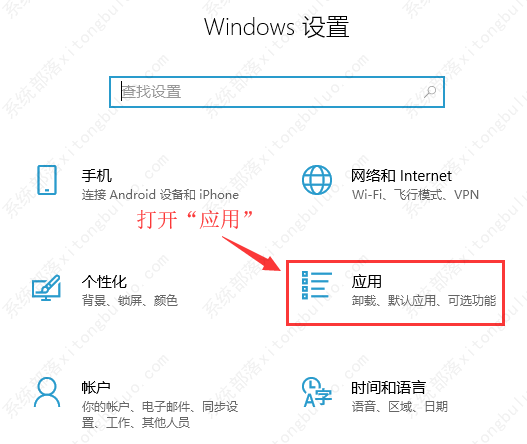 2、在打开的windows设置中,找到“应用”,并打开;