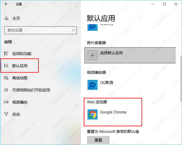3、在设置中,左侧找到默认应用,然后在右侧就可以看到要更改的默认应用程序的设置;