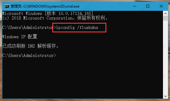 2、随后输入“ipconfig /flushdns”并回车,如图所示: