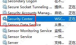 3、在弹出的服务窗口中找到“security center”,这个就是安全中心,双击打开。