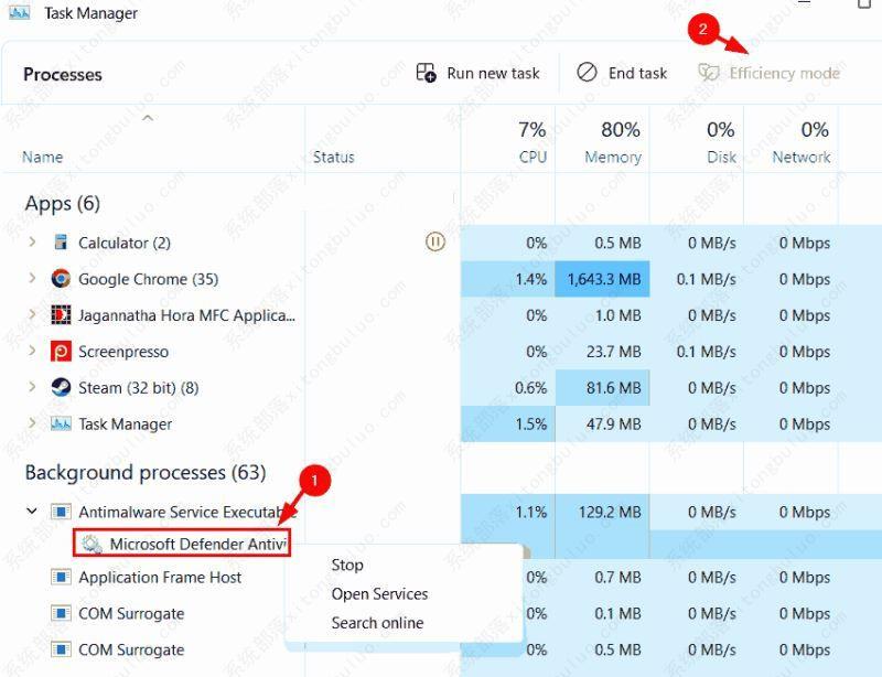 留意:您可能留意到,对于有些应用程序/进程,效率模式选项显示为深灰色,大家可以启用它。这也是它是系统中的一个关键进程,它需要耗费一定比例的系统网络资源。所以你可以绕过它。