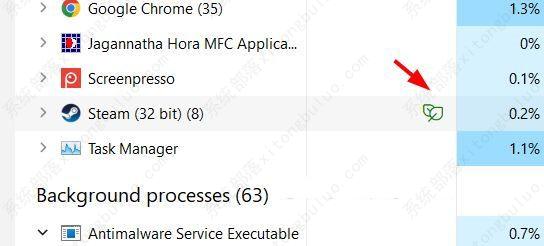 第 9 步:如今大家可以见到在任务管理器列表里的该应用程序前边出现了一个的绿色叶型图标,如下面的显示屏截图所显示。