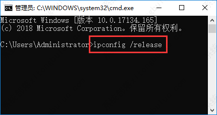 4、输入ipconfig /release ,释放ip地址。如图所示: