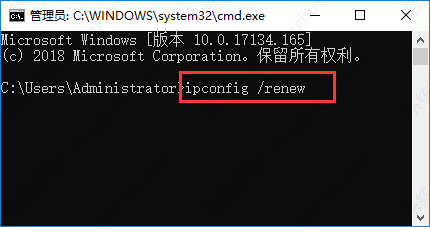 5、输入ipconfig /renew ,重新获取ip地址。如图所示: