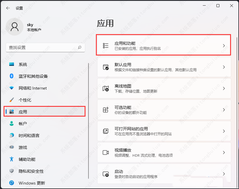 2、Windows 设置(Win+i)窗口,左侧边栏点击【应用】,右侧找到并点击【应用和功能(已安装的应用,应用执行别名)】。