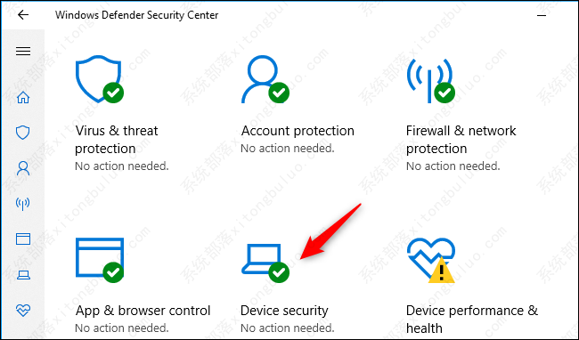 单击安全中心中的“设备安全性”图标。