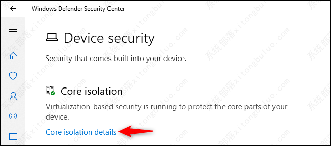 如果在PC的硬件上启用了核心隔离,则将在此处看到消息“正在运行基于虚拟化的安全性以保护设备的核心部分”。