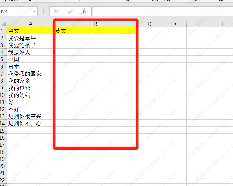 1、打开需要翻译的Excel文档,添加一列放置对应翻译后的英文内容;