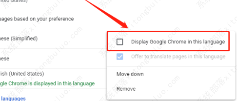 7、在出现的窗口中勾选“Display Googe Chrome in this language”选项。