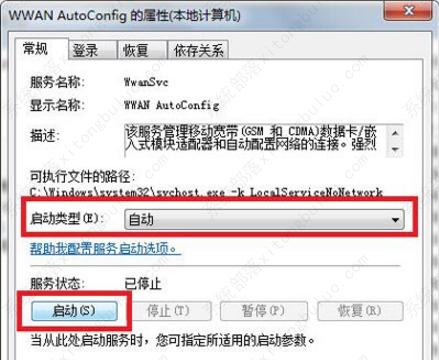 3、将“启动类型”修改为“自动”,点击“启动”按钮打开该服务,然后点击确定即可。