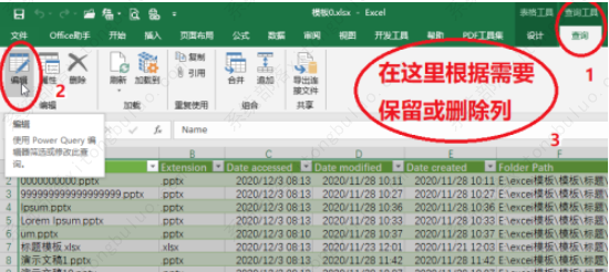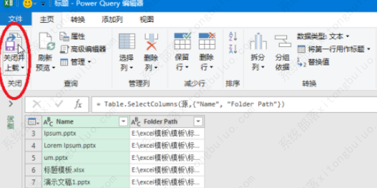 4、然后我们找到查询选项卡,选择查询选项卡下的编辑,在这里删除我们不需要的列,然后点击关闭并上载。