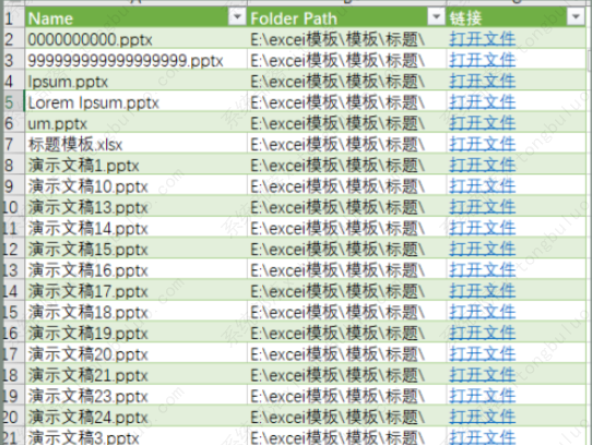 5、我们还需要添加一列,添加一个连接,在空白处输入公式=HYPERLINK([@[Folder