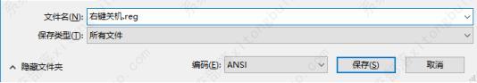 2、另存为文件,将保存类型修改为“所有文件”,文件名为“右键重启.reg”,点击确定。