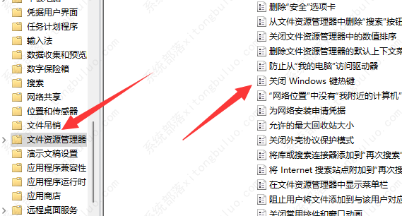 4、再展开“文件资源管理器”并双击打开右边“关闭Windows键热键”。