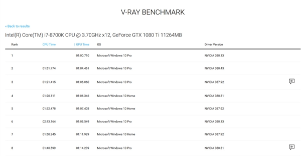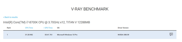 V-Ray benchmark测试,GPU“相机场景”渲染用时,TITAN V仅41秒,GTX 1080 Ti则需要107秒,快了60%之多。