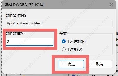 3、双击AppCaptureEnabled,并打开,在打开的窗口中,将数值数据改为0并点击确定。