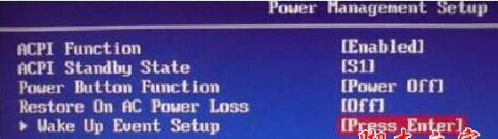 2、在弹出的Power Management Setup界面中,切换到“Wake Up Event Setup”,按回车选择“Press Enter”。