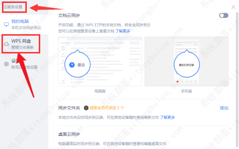2、随后,在打开的云服务设置中点击WPS网盘选项。