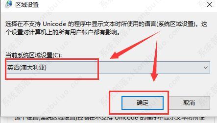 6、重启完成后,我们再次进入到这个设置中,再将区域设置更改为我们原来的设置【中文】,点击【确定】。