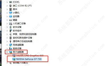 2、在显示适配器栏目中,点击打开下拉菜单即可查看显卡型号。