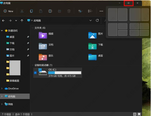 3、Win11 的多窗口功能新增多种排列方式,用户可以轻易布局多个应用窗口。像是图中展示的这样子,比起win10的多窗口丰富了很多,同时win11还可以在外接显示器的时候记忆现在所有应用的窗口位置,当拔下显示器后马上恢复原来的位置。