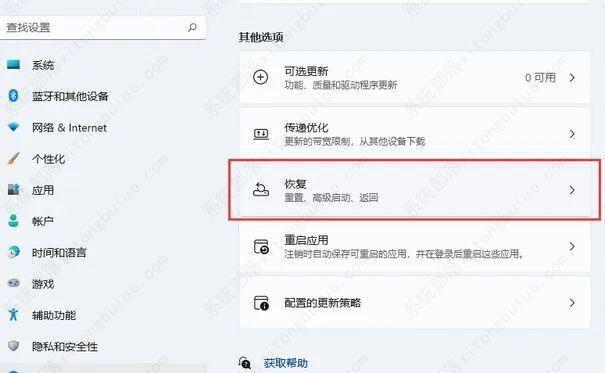 3、接着,在其他选项中,点击恢复。