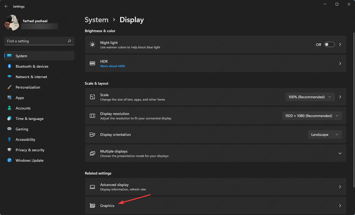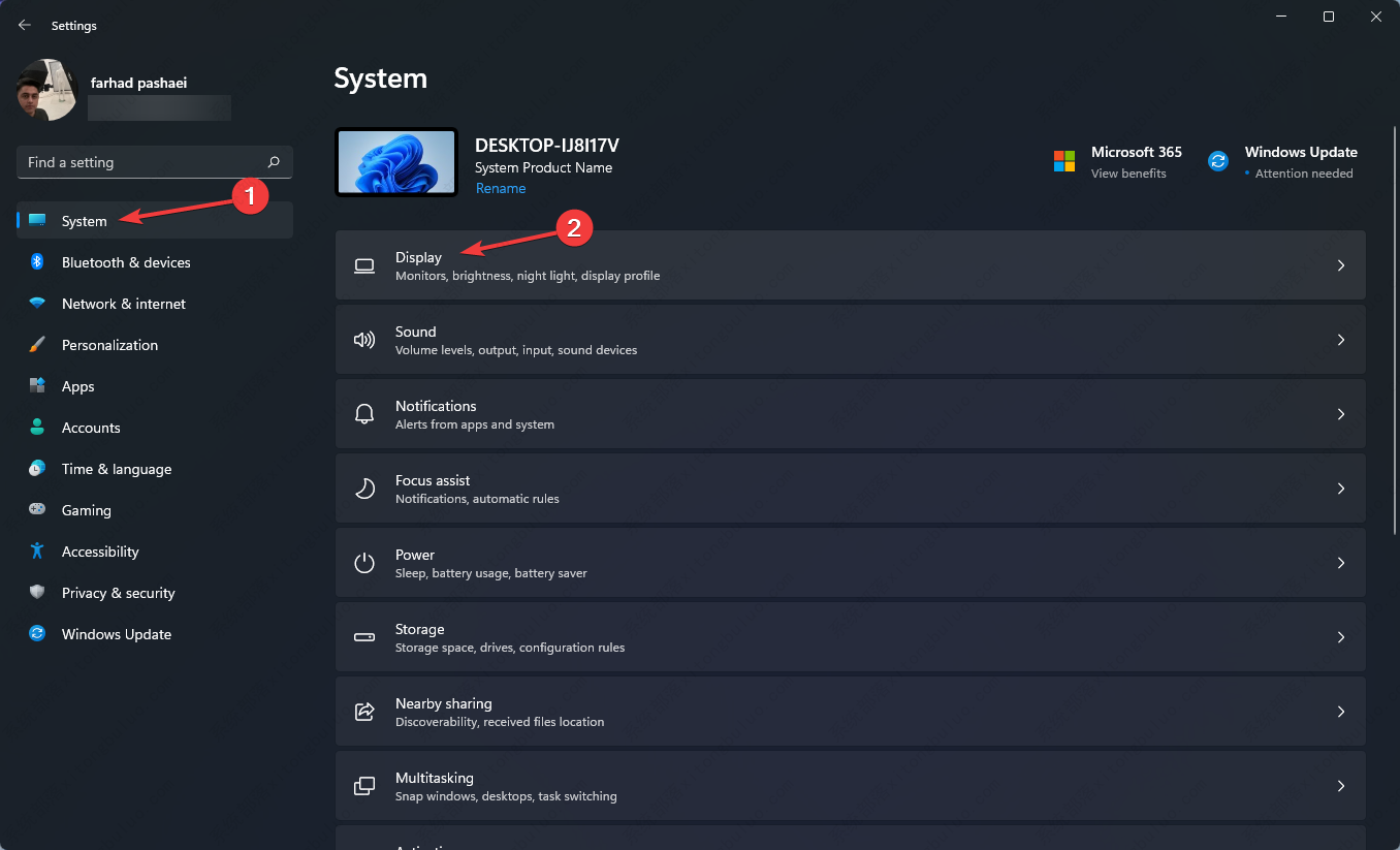 从左侧窗格中,选择System,然后从右侧窗格中选择Display。