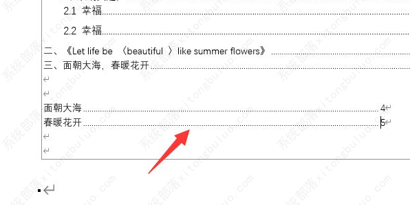 6、按tabs输入较小的点数,将鼠标放在目录和页码之间,按下tab键就可以打小点。