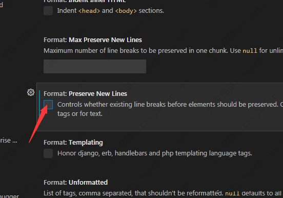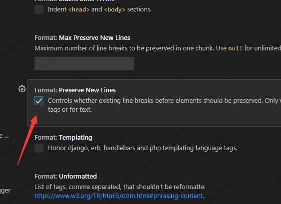 4、最后勾选上preserve new lines选项之后,会自动保存设置了。