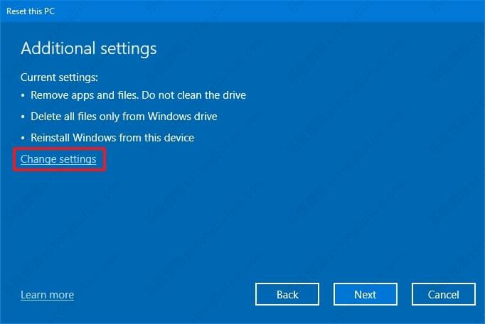 7、(可选)单击更改设置选项。