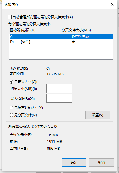 方法三、设置虚拟内存